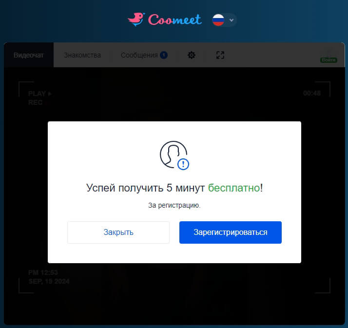 Всем новым пользователям Кумит дарит 5 бесплатных минут, которые предоставляются сразу после регистрации. Эти начальные 5 минут можно сразу же потратить на видеочат и знакомство девушками в CooMeet. Так вы можете сразу попробовать все функции сервиса и оценить его возможности.